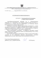 Відповідач Ситниченко Наталія Олександрівна викликається у судове засідання, яке відбудеться 22 лютого 2018 року об 10.15 годині в приміщенні Амур-Нижньодніпровського районного суду м. Дніпропетровська за адресою: м. Дніпро, вул. Новоселівська, 9, зала судового засідання №18.