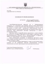 Виклик відповідача Русяєв А.В. по цивільній справі № 203/4549/19 за позовом Русяєвої О.В.(суддя Подорець О.Б.)